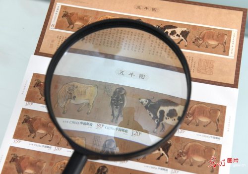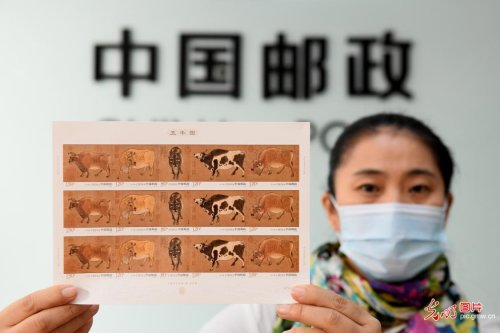 2021年3月20日,在中國郵政集團(tuán)有限公司河北省新樂市分公司拍的《五牛圖》特種郵票。當(dāng)日,中國郵政發(fā)行《五牛圖》特種郵票一套5枚,小型張1枚。全套郵票面值5.90元,小型張售價(jià)6元。