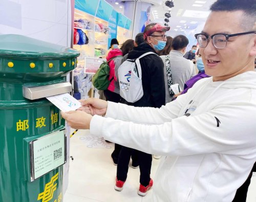 4月10日是北京冬奧會開幕倒計(jì)時(shí)300天,在王府井工美大廈一層的北京2022官方特許商品旗艦店內(nèi),多款倒計(jì)時(shí)系列產(chǎn)品集中亮相。當(dāng)日,中國郵政集團(tuán)有限公司北京市分公司發(fā)行的一款倒計(jì)時(shí)300天系列紀(jì)念封,在冬奧旗艦店內(nèi)亮相首發(fā),紀(jì)念封上貼有北京2022年冬奧會吉祥物郵票,十分具有紀(jì)念意義。活動當(dāng)天,紀(jì)念封設(shè)計(jì)者也蒞臨冬奧旗艦店現(xiàn)場,講述產(chǎn)品設(shè)計(jì)背后的故事,并進(jìn)行了現(xiàn)場簽售。除熱鬧的簽售現(xiàn)場外,冬奧旗艦店內(nèi)的郵筒也吸引了現(xiàn)場顧客的關(guān)注,有顧客選擇購買倒計(jì)時(shí)300天紀(jì)念封后,直接通過郵筒寄出,別有紀(jì)念意義。