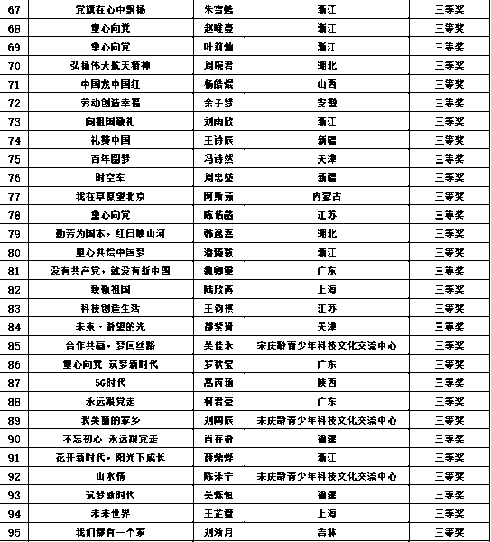 由中華全國(guó)集郵聯(lián)合會(huì)、中國(guó)郵政集團(tuán)有限公司、中國(guó)宋慶齡基金會(huì)共同主辦的“永遠(yuǎn)跟黨走 逐夢(mèng)新時(shí)代”全國(guó)少年兒童郵票創(chuàng)作設(shè)計(jì)作品征集活動(dòng)圓滿結(jié)束。獲獎(jiǎng)作品名單已于2021年3月29日至2021年4月4日在主辦單位官網(wǎng)進(jìn)行了公示,未收到申訴與舉報(bào)。現(xiàn)將獲獎(jiǎng)名單予以公布。