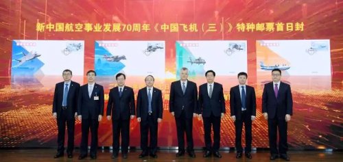 為慶祝中國(guó)共產(chǎn)黨成立100周年、新中國(guó)航空事業(yè)發(fā)展70周年,4月17日,展現(xiàn)中國(guó)航空工業(yè)最新航空裝備發(fā)展成就的《中國(guó)飛機(jī)(三)》特種郵票正式公開(kāi)發(fā)行。在北京舉行的首發(fā)儀式上,中國(guó)航空工業(yè)集團(tuán)黨組副書(shū)記李本正,中國(guó)郵政集團(tuán)黨組成員、副總經(jīng)理康寧共同為郵票首發(fā)揭幕。中國(guó)集郵有限公司同步發(fā)行4枚《中國(guó)飛機(jī)(三)》首日封。
