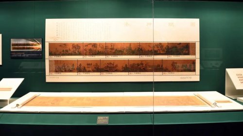 展覽現場,共展出郵票56套1732枚(含故宮主題郵票52套1590枚)、郵票手稿等珍貴展品54件、聯合發行首日封13件;配合郵票展出的25件故宮文物,涵蓋書畫、玉器、琺瑯器、青銅器、瓷器、家具等多個門類,與同主題的郵票交相輝映。