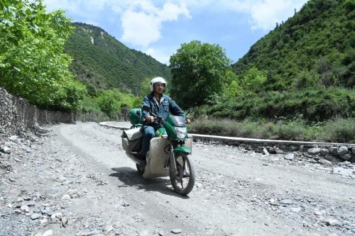 楊九才,迭部縣郵政分公司代古寺郵政所所長,一個壯實、憨厚的康巴漢子。他從事郵政工作至今已23年,一直負責臘子口戰役紀念地紅色旅游景點、水泊溝林場、洛大鄉、臘子鄉、桑壩鄉政府及周邊鄰近村民的郵政服務工作。這些年里,他累計投送了400多萬份報刊、20萬件其他類型的郵件,騎壞了4輛自行車、3輛摩托車,上百萬公里的山路,腳下的鞋已經不知道換了多少雙了。