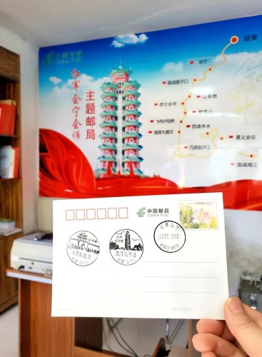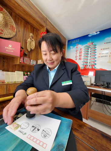 近年來,甘肅白銀市和會寧縣努力打造紅色文化,當地郵政成立了會寧會師主題郵局,開發了會師主題郵品,通過郵品宣傳、傳承會師精神。一位騎行到會寧的騎友特意來到主題郵局,在會寧會師明信片上蓋上郵戳,并將明信片投入郵筒。“在明信片上蓋上郵戳,才算是真正到會寧打卡過,看見明信片就會想起紅軍會寧會師這段歷史?!?/p>