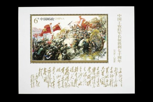 2006年10月22日,《中國工農紅軍長征勝利70周年》紀念郵票發行。郵票內容分別為《送別》《遵義會議》《飛奪瀘定橋》《過草地》,小型張則以國畫《大會師》為主題圖案。