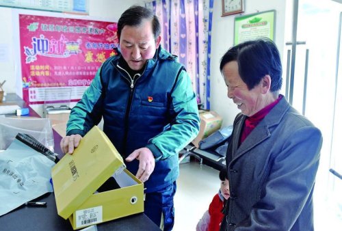 趙滿(mǎn)明將代買(mǎi)的生活用品送到殷家城鄉(xiāng)寺山村村民白有君手中