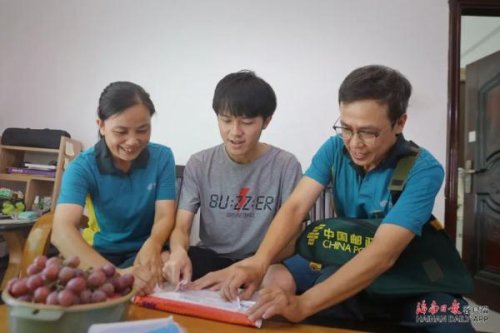 “每年到七八月,我都要投遞錄取通知書。每當看到考生拿到自己心儀大學的通知書全家人開心的樣子,真是既高興又羨慕。沒想到,今天我也有機會體會這樣的心情,而且是親手將錄取通知書送到自己孩子手中……”對于海口郵政投遞員盧志強來說,從業30年來今天的心情最為特別。