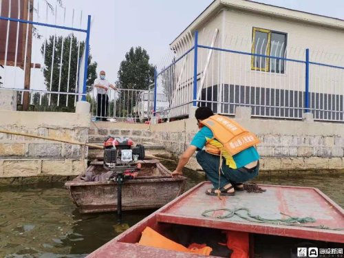 上午10點(diǎn)半,已經(jīng)被汗水濕透衣服的王少朋回到了丁樓村碼頭。簡(jiǎn)單和碼頭上的村民寒暄兩句,甚至都來(lái)不及坐下喝口水,王少朋就收起船錨出發(fā)了。因?yàn)闀r(shí)間不容許他耽擱太久,接下來(lái)的四個(gè)村子,全都在水上,龔莊和柳溝相距較近,但是王蘇白和建閘距離較遠(yuǎn),從王蘇白村到建閘村,要在湖上航行整整一個(gè)半小時(shí)。