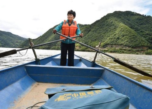8月16日,石泉縣曾溪鎮(zhèn),趙明翠劃著小船,載著錄取通知書、網(wǎng)購包裹等郵件去往對岸。“往常騎摩托車,今天前面修路,記者同志你扶好。”一葉小舟在寬闊的漢江上橫渡,此時江面雖風平浪靜,但乘船者心里卻“波濤洶涌”。當年18歲的趙明翠第一次送郵件也是走的這條水路。