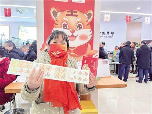 買到虎年生肖郵票的市民十分開心。通訊員 黃倩 攝