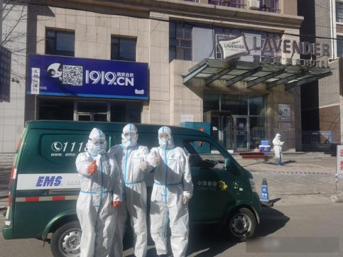 14時36分,郵車到達隔離點——鎮賚縣薰衣草賓館。投遞人員下車后第四次對藥物郵件進行消毒,最終將藥物送到集中隔離點工作人員處,由他們轉交到孩子手中。
