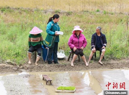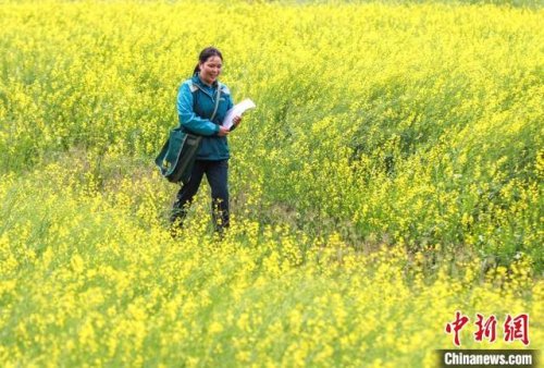 圖為朱正琴把郵件送到田間地頭。 磨桂賓 攝