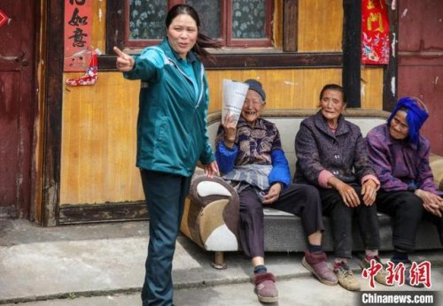 圖為朱正琴與村里的老百姓們交談。 磨桂賓 攝