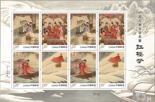4月23日,中國郵政發(fā)行《中國古典文學(xué)名著——〈紅樓夢〉(五)》特種郵票一套4枚、小型張1枚。郵票圖案名稱分別為:黛玉焚稿、金玉聯(lián)姻、探春遠嫁、寶玉卻塵,小型張圖案名稱為:寒塘鶴影。全套郵票面值11.10元。