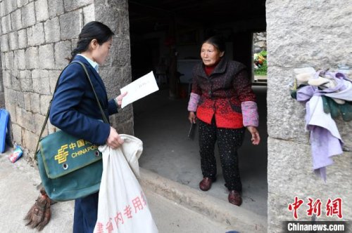 圖為蔣玉美走村入戶送郵件。 王東明 攝