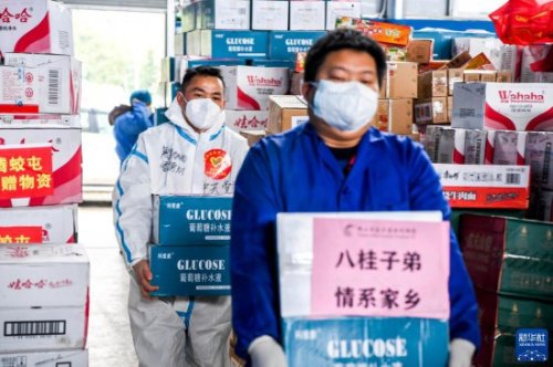 2月15日,在廣西百色市德??h一處倉庫,工作人員在搬運抗疫物資。新華社記者 曹祎銘 攝