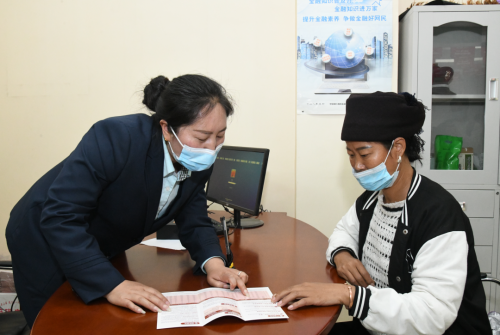 “當然可以,我們郵政不僅有收款二維碼,還有基金、理財、保險等業務……你還可以開通手機銀行,以后訂貨轉賬很方便,也不要手續費哦。”另一邊,土比妞牛的同事馬玉蘭、魯瑜熟練地為吉覺勒果辦理掃碼支付業務。