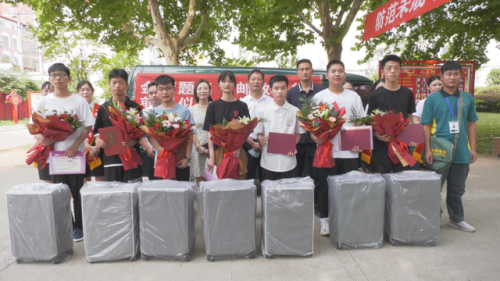 一大早,徐會超就懷揣著激動的心情趕到了郵政公司。消殺郵件后,徐會超與工作人員帶著鮮花與祝福和錄取通知書,來到了上蔡縣第一高級中學。在經過雙證核實、簽字、拍照等一系列簽收手續后,徐會超鄭重地把清華大學、北京大學錄取通知書送到7位學子手中,工作人員為他們送上上蔡縣郵政分公司特地準備的拉桿箱和鮮花。上蔡郵政分公司總經理翁斌、副總經理原芳為考生們送去郵政了真摯的祝福。