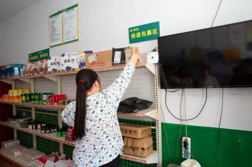 服務站“郵掌柜”譚清英也是滿面笑容,“取包裹的人多了,來我店里面買東西的人就跟著多了”。
