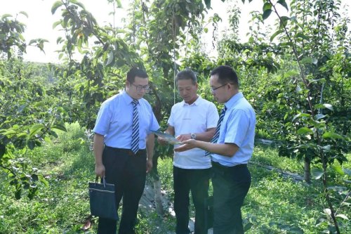 “崔老板,今年果園情況怎么樣?”一行人正在梨樹間穿行,就聽見幾人的腳步聲由遠(yuǎn)及近追了上來,郵儲銀行淅川縣支行副行長劉楠和郵政投遞員付浩熟門熟路打起招呼。