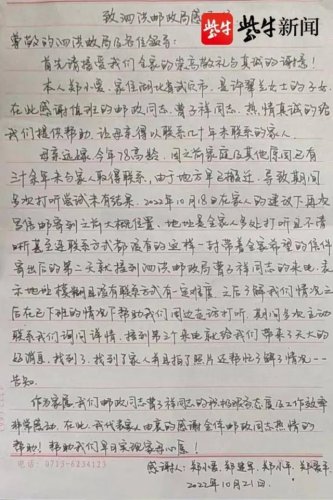提及信中的內容,鄭小愛說:“幾十年沒和舅舅見過面,很多話想說卻又不知道從哪兒說起,我在信中告訴舅舅,母親和我們姐弟四人現(xiàn)在過得都很好,信中還問了他的生活怎么樣,家里的孩子工作學習如何,最后留了我和弟弟的電話號碼,希望他看到信以后能跟我們聯(lián)系。”