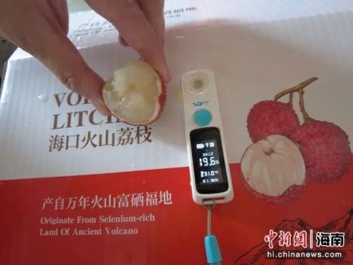 工作人員對荔枝甜度進行檢測。