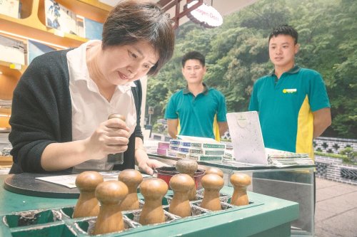 遠(yuǎn)遠(yuǎn)看到薄霧之中的一抹綠色,北海景區(qū)“黃山好禮”小店的工作人員,立即從柜臺(tái)拿出一沓明信片。