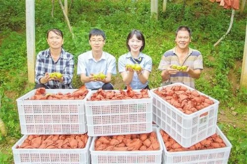工作人員與六盤水市果農(nóng)采摘獼猴桃,慶祝豐收
