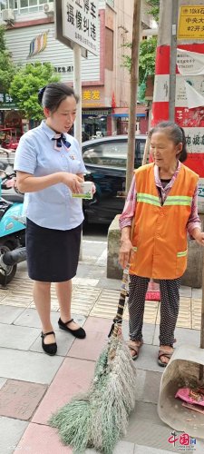 經(jīng)過休息,環(huán)衛(wèi)阿姨身體狀態(tài)恢復(fù)如常準(zhǔn)備繼續(xù)工作,該行工作人員還為她送上藿香正氣液備用?!澳銈兎?wù)真的太好了,謝謝你們對(duì)我們戶外勞動(dòng)者的關(guān)心、關(guān)愛和幫助,還學(xué)到了防詐騙知識(shí),感謝你們?!杯h(huán)衛(wèi)阿姨感動(dòng)地說。