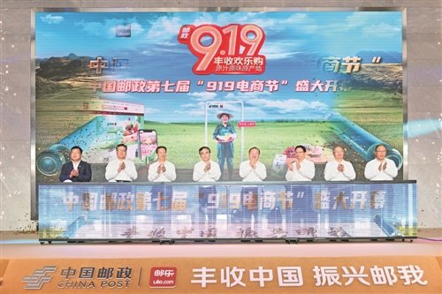 9月1日,第七屆中國郵政“919電商節”正式啟動。作為“中國農民豐收節金秋消費季”系列活動之一,今年的“919電商節”,中國郵政繼續圍繞“郵政919,豐收歡樂購”主題,組織系列強農惠農和促銷讓利活動,通過消費補貼、郵政直播等方式,活躍城鄉消費市場,營造“共慶共享豐收”的濃厚氛圍,為鄉村振興增添新活力。