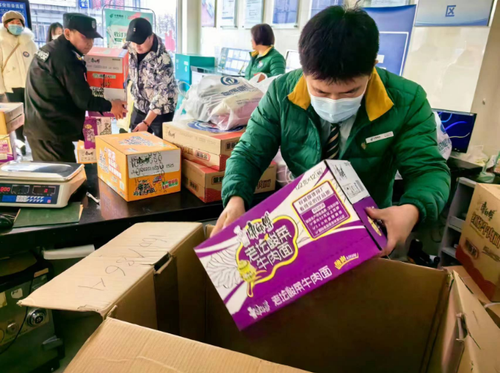 2023年12月28日上午10點,不少市民、慈善組織和愛心企業帶著食品、棉衣、消毒用品等愛心物資,在中國郵政北京市昌平區分公司政府街支局進行郵寄,將愛心傳遞到災區人民手中。“我看到甘肅災區需要防寒物資,就想著我們一定要出一份力。”棒棒糖愛心社社長陳玲玲說,這一次甘肅地震,愛心社在短時間內籌集了善款,采購了棉服、方便面、手套、圍巾、消毒液等物資,都是災區急需的東西,希望他們能夠早日渡過難關,重建家園。