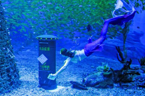 該郵局由鄭州市郵政分公司與鄭州海昌極地海洋公園有限公司聯合打造,旨在推動傳統書信文化與旅游產業(yè)深度融合,進一步促進“文旅相融”。游客在“海底郵局”購買各類與海洋主題相關的明信片,書寫來自大海的祝福語郵寄給親友,“美人魚”小姐姐會把經過防水處理的明信片投入位于“海底”的郵筒。