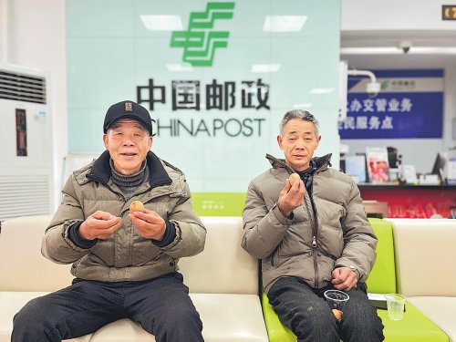 浙江省江山市郵政分公司在春節(jié)期間不斷優(yōu)化服務,提升服務溫度,除了在網(wǎng)點配備愛心藥箱、老花鏡等便民物品,還推出“‘蛋’生幸福年”活動,來營業(yè)廳辦理金融業(yè)務的客戶都可獲贈茶葉蛋一枚,為農(nóng)歷新年贏得好彩頭。□柴菁 攝影報道