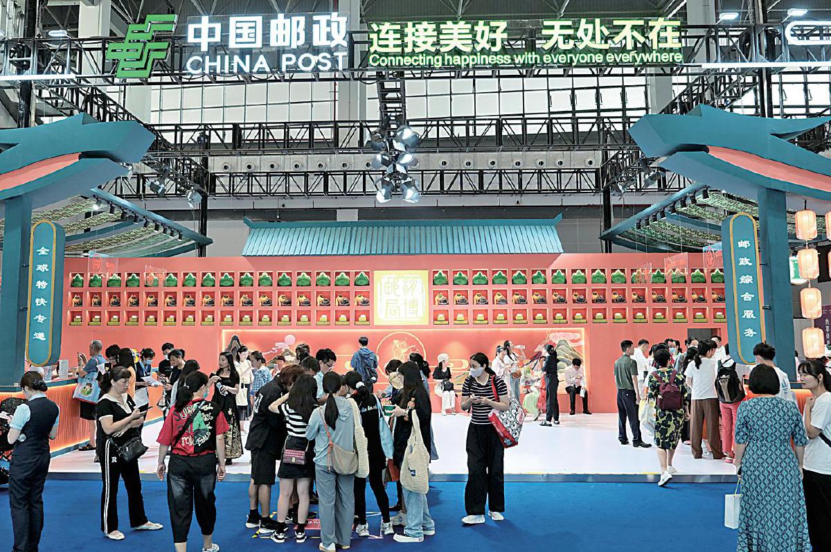 4月13日,第四屆中國國際消費品博覽會(以下簡稱“消博會”)拉開帷幕。在展會現場,消博郵局和消博會官方特許商品零售中心分別設i人接頭點和e人集結處,是消博護照的指定發放點。消博郵局整體采用了深藍與活力橙大膽撞色,運用傳統的云紋、祥龍等國風元素貫穿整體,同時,將消博會吉祥物“元元”“宵宵”融入郵政國潮IP設計,打造國潮風尚消博郵局,凸顯多元化、年輕化、現代化的郵政品牌新形象。