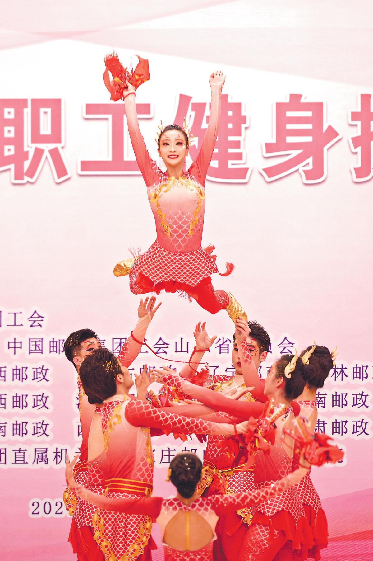 黑龍江郵政代表隊隊員的表演以“龍”為主要元素,開場時的高難度動作贏得了全場的喝彩。