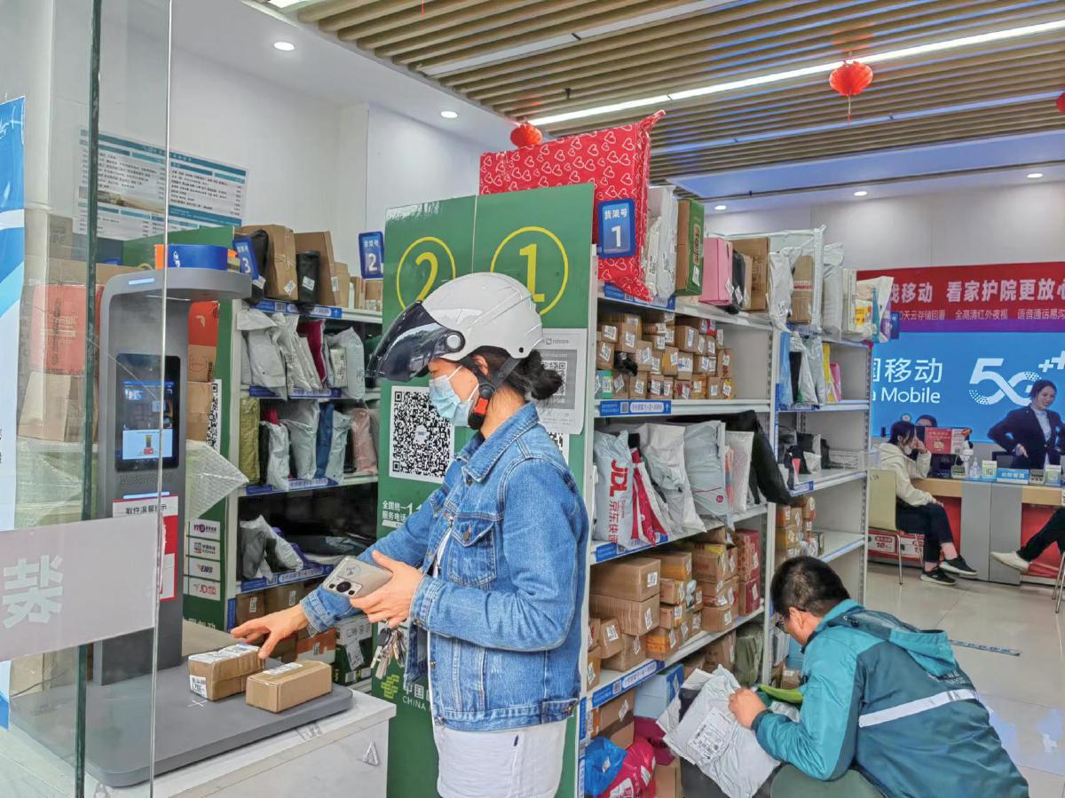 “把小郵局建在電信營業廳,不僅有效壓降了建設成本,還可以通過疊加郵件投遞、散件攬收、拼多多退換貨等業務,實現與電信公司互相引流,讓小空間發揮大作用。”城區寄遞事業部負責人董蔚介紹說。