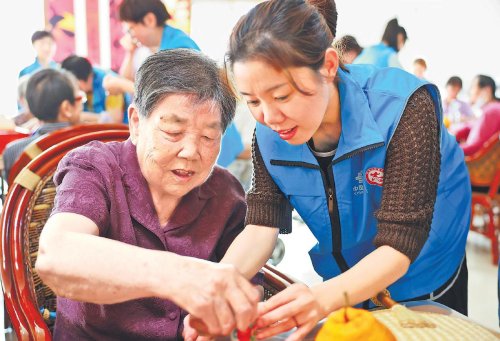 隨后,服務(wù)隊(duì)隊(duì)員為老人們送上水果和蒲扇,并共同穿針引線制作香囊,完成一份很有紀(jì)念意義的手工藝品。在服務(wù)隊(duì)隊(duì)員的陪伴下,老人們度過(guò)了一段難忘的時(shí)光,而他們的笑容和感激的話語(yǔ),也成了隊(duì)員們最好的收獲。