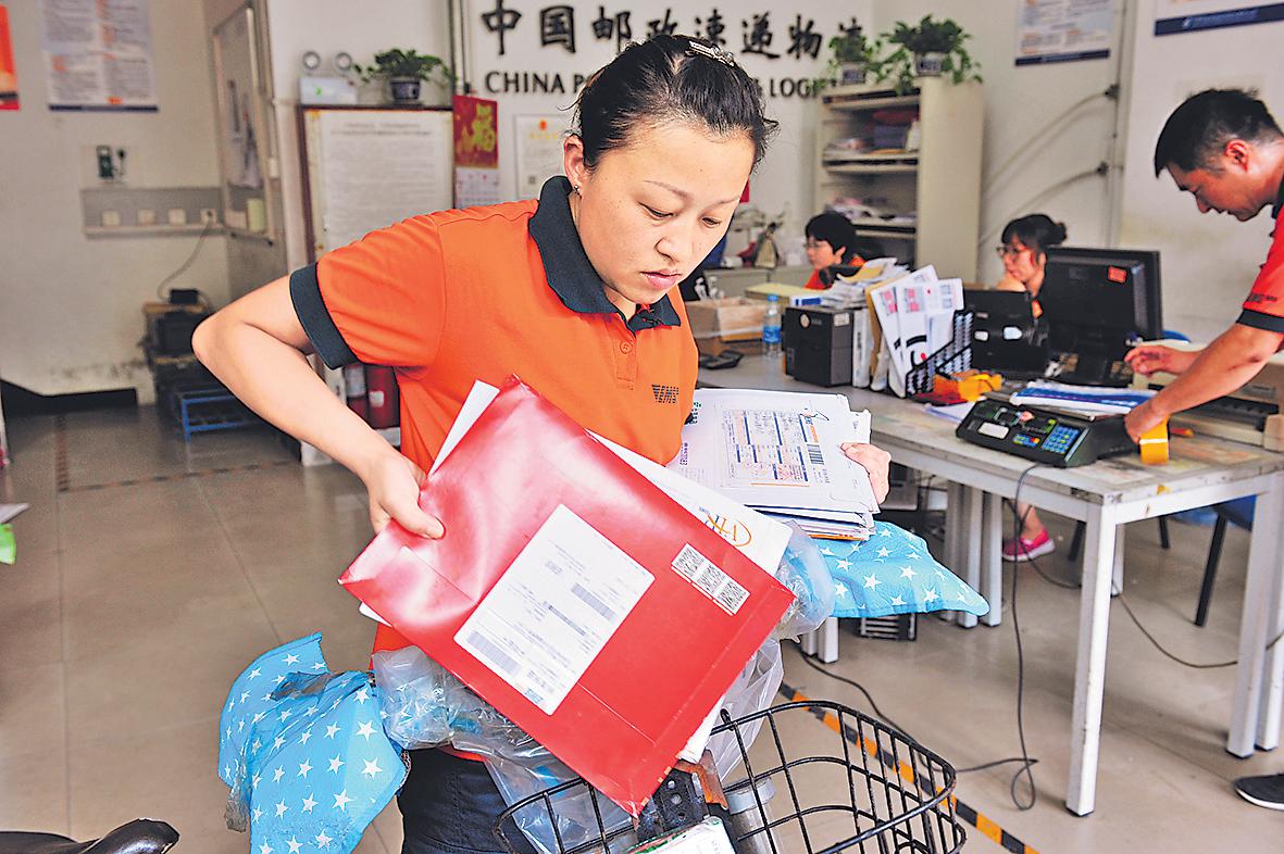 劉婷準(zhǔn)備出班投遞。□周美蘭 攝