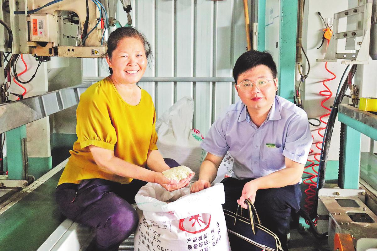 韶關是廣東省糧食和蔬菜等重要農產品供應基地。韶關市分行認真貫徹國家及省、市政府對“三農”工作的相關決策部署,加大涉農領域信貸資金投放力度,為夏糧收購、顆粒歸倉提供全方位金融支撐,助力粵港澳大灣區“米袋子工程”建設。截至7月末,該分行累計發放涉農貸款余額超過50億元。圖為冠奕通公司負責人徐石鳳(左)向郵儲銀行信貸人員展示剛生產加工出來的新大米。