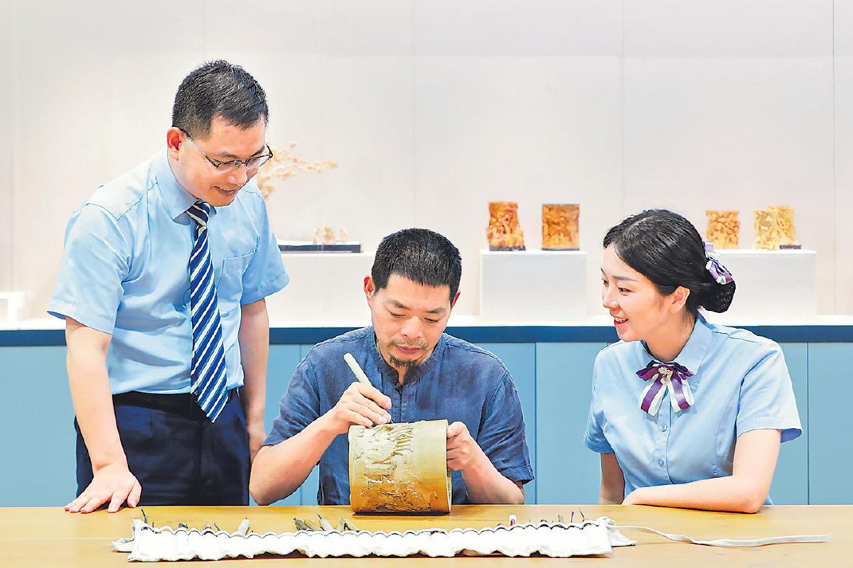 非遺傳人洪建華展示雕刻技藝。 □施亞磊 攝