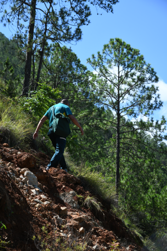剛到木里時,采訪組曾跟隨何勇和王銀海從王順友故居出發(fā),沉浸式體驗了一段王順友的“馬班郵路”,曾經的郵路已被茂密的植被覆蓋,但沿著那些深深淺淺的腳印,依然能找到路的蹤跡。山路陡峭且泥濘,沿途青岡草的荊棘刺痛皮膚,記者僅走了2公里就氣喘吁吁,但遠處還有海拔4192米的查爾瓦梁子、水流湍急的雅礱江、懸崖邊的“九十九道拐”需要穿越。