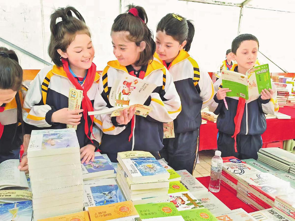 近日,由新疆維吾爾自治區(qū)喀什市委宣傳部、市教育局牽頭,喀什地區(qū)郵政分公司承辦的“閱讀新時代·喀什向未來”圖書贈閱惠民活動啟動儀式在喀什市第十一小學(xué)舉行。喀什地區(qū)分公司捐贈了價值6萬元的圖書和價值80萬元的圖書優(yōu)惠券,并現(xiàn)場進行圖書展銷,進一步豐富學(xué)校圖書閱覽室藏書,培養(yǎng)學(xué)生良好的閱讀習(xí)慣,讓他們在讀書中獲得更多知識,健康快樂地成長。圖為喀什市第十一小學(xué)的學(xué)生徜徉在書海中。
