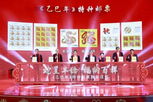 蛇呈豐稔、福納百祥。1月5日,《乙巳年》特種郵票首發儀式在國家科技傳播中心隆重舉行。