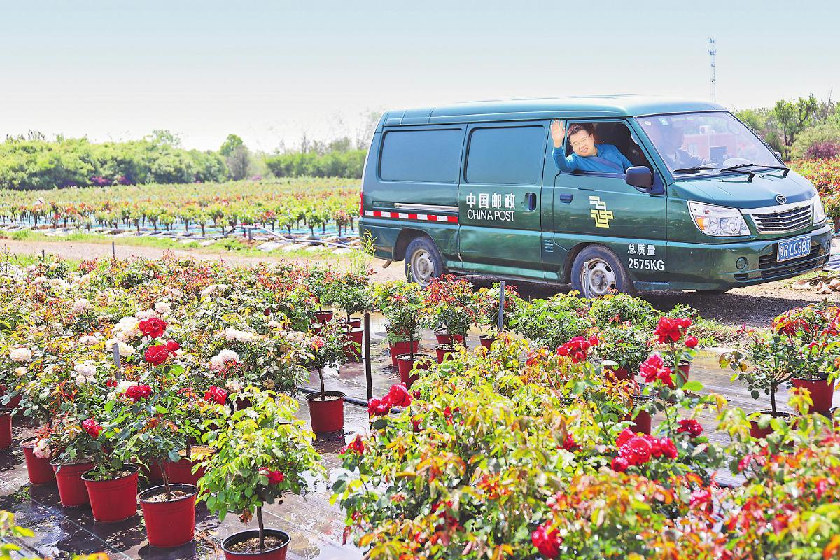花容秀麗、芳香馥郁的南陽月季通過郵政渠道進入千家萬戶。□劉力揚 攝