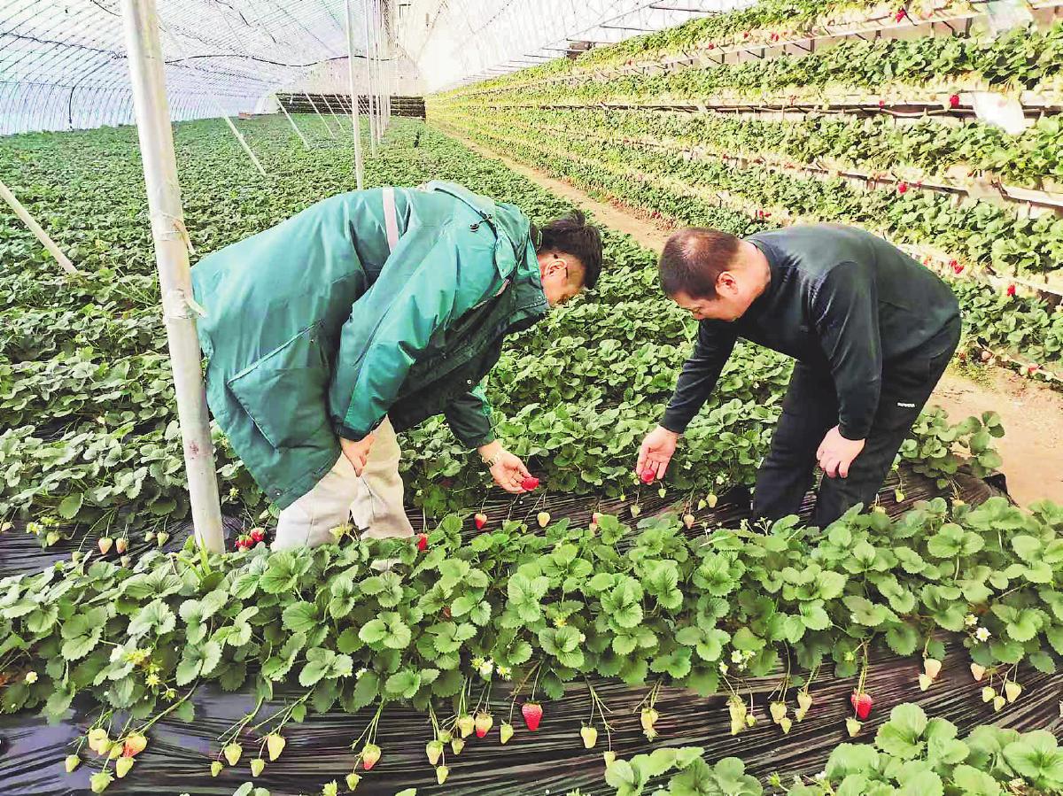丹東市分公司攬投人員駐點為草莓種植戶提供采摘、套袋、封裝、打包服務?! 醺攮h宇 攝
