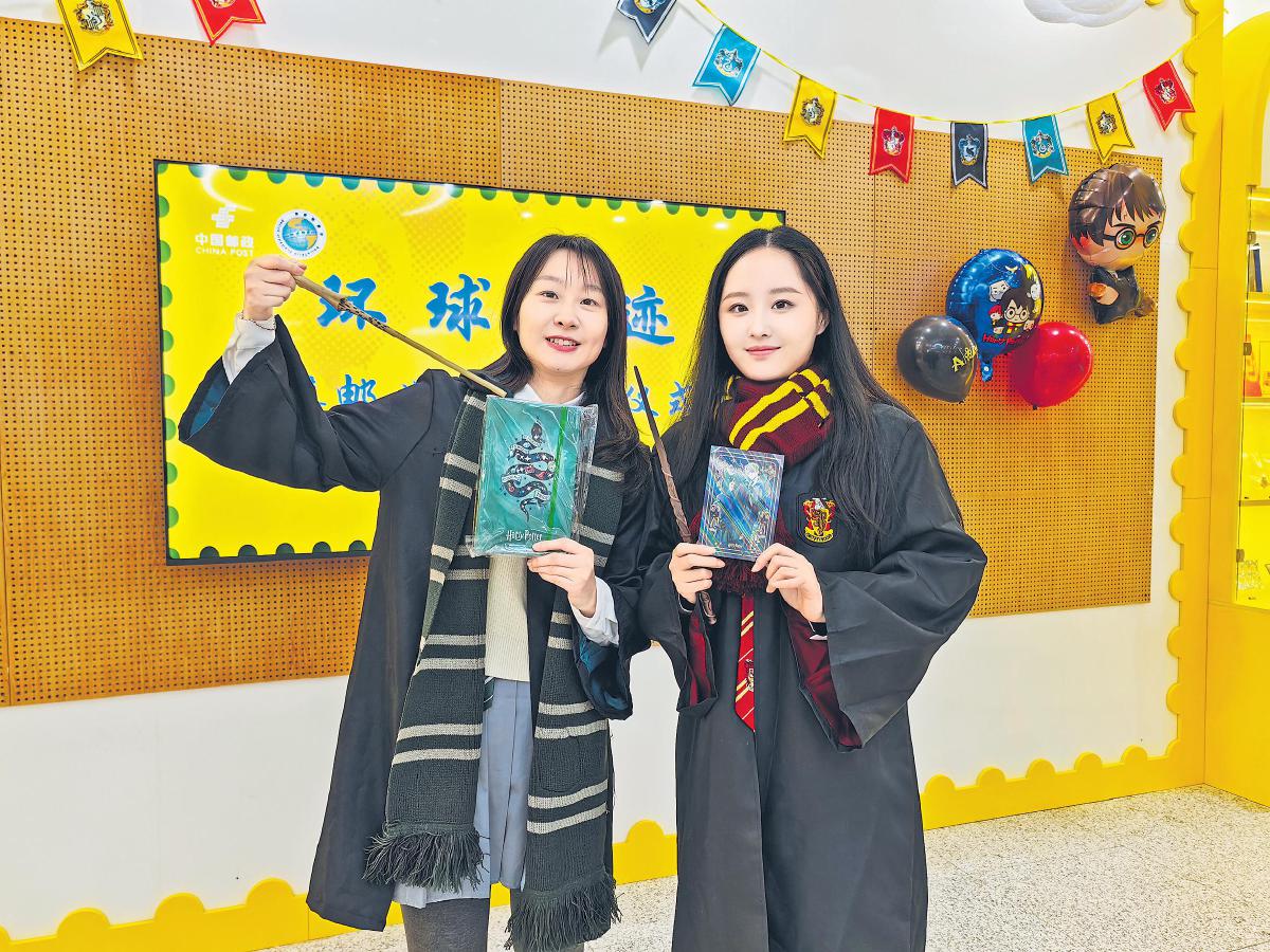 近日,環球郵跡集郵旗艦店在北京建國門郵政支局正式開業。該旗艦店內設立外國郵票展示區、文化活動區、產品銷售區和郵文化交流區,展示、銷售來自世界各地的郵票,為集郵愛好者提供了一個全新的交流平臺。圖為郵政工作人員在店內展示中國集郵與全球知名文化IP哈利·波特聯名推出的《蛇愿》生肖郵票珍藏套裝產品。