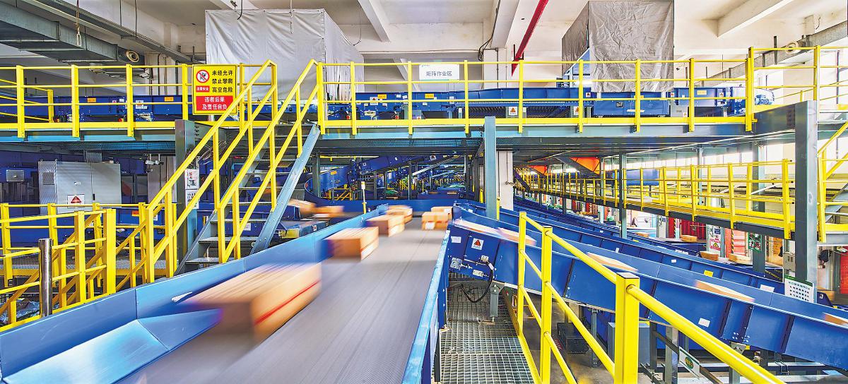 在廣州郵區中心的主場地,分揀機宛如一條條橙色的巨龍高效地運轉著。廣州郵區中心在郵件處理方面的專業性和高效性,為優質的郵政服務提供了有力保障。 □呂文禮 攝