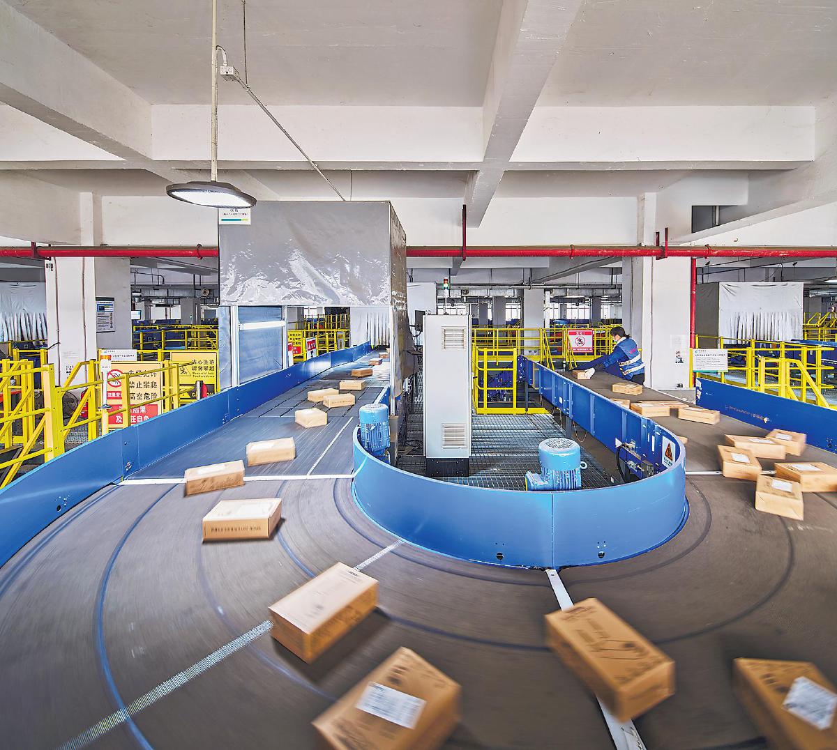 在廣州郵區中心機場北處理中心,郵件在傳送帶上快速流轉,經過智能分揀系統的精準識別和快速分揀,高效完成內部作業處理。□楊曉明 攝