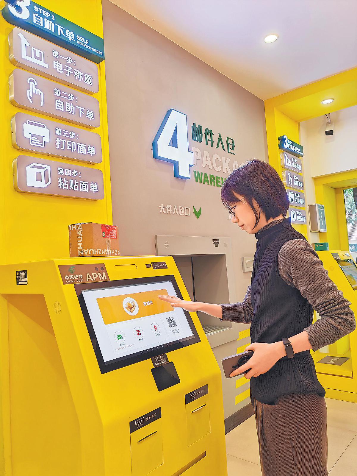 在深圳市福田區的自助體驗式郵局,客戶通過先進的智能設備輕松完成包裹寄遞業務。現代化的設備、創新的營業處理方式與傳統郵局形成鮮明對比,成為科技賦能郵政服務的典范。 □呂文禮 攝