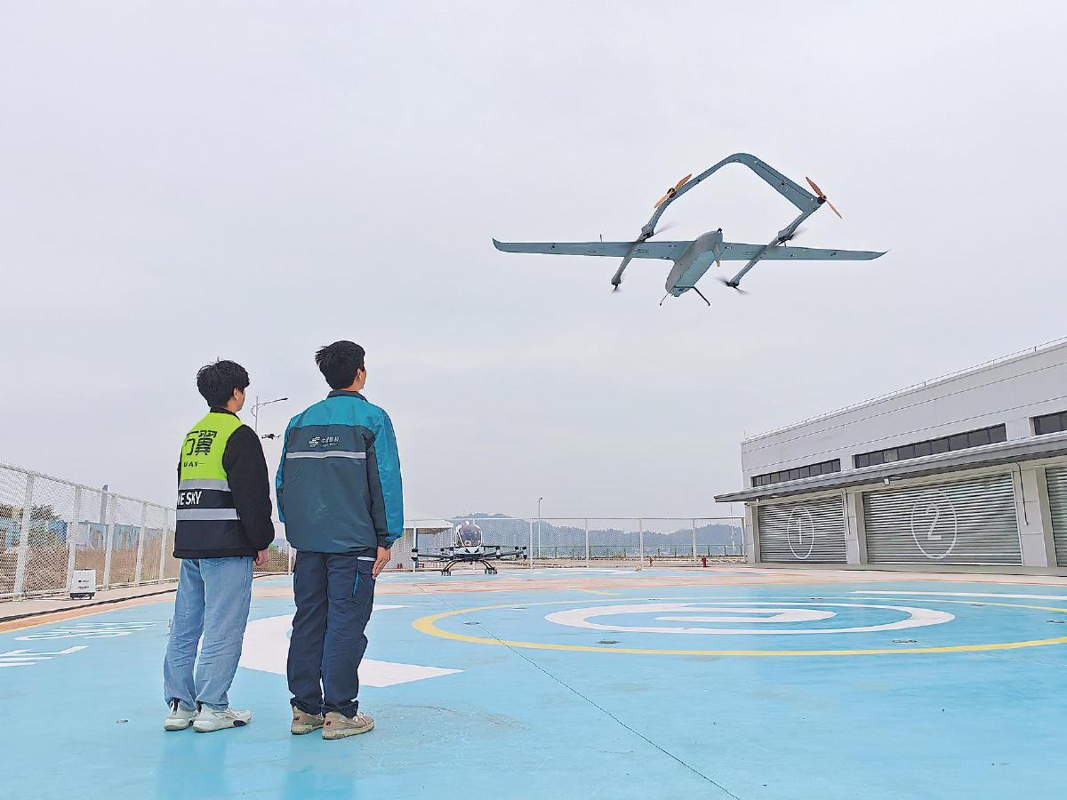 在珠海市桂山島唐家港,無人機郵路正式啟航。這一創新舉措不僅實現了海島郵件的高效運輸,還為海島居民帶來了前所未有的便捷寄遞體驗,有效減少了海島交通不便對人們生活的影響。 □呂文禮 攝
