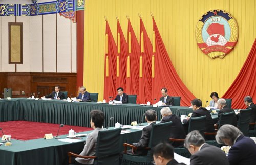 3月9日下午,政協第十四屆全國委員會常務委員會第十一次會議在北京舉行。中共中央政治局常委、全國政協主席王滬寧主持會議。新華社記者 岳月偉 攝